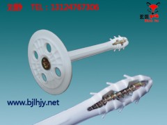 该款一体式膨胀保温钉 采用高强超韧尼龙精制而成,其尾部设有螺丝自攻性膨胀结构,可以更好地把材料固定在墙体上,而且施工方便快捷,特别适合钢筋混凝土墙和实心墙体,这款一体式保温钉价格适中,在房屋的保温层中广泛使用;耐久性和耐老化性较好,可在 -40 ℃ 至+ 70 ℃ 的温度环境中保持长期稳定。镀锌螺丝很好的解决了腐蚀问题,耐久性好,且尼龙材质传热性能低,冬季没有冷桥,高效节能。 根据保温层厚度的不同,分为多种规格。 产品特点 ● 保温钉价格适中,规格齐全 ● 高强超韧尼龙 + 优质镀锌钢钉 ● 单个保温钉抗拉承载力》0.3KN ● 单个保温钉对系统导热增加值《0.004(m2.k) ● 执行标准:JG 149-2003