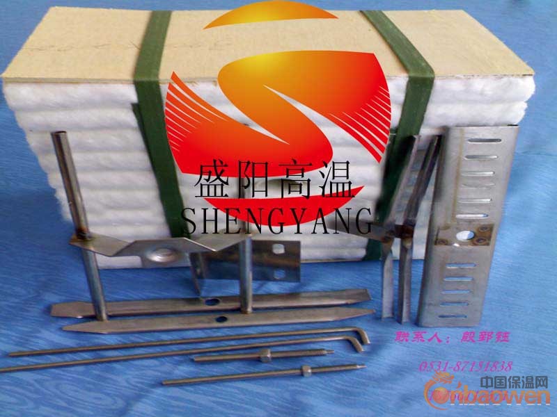 硅酸铝陶瓷纤维锚固件:纤维组块专用锚固件的使用处于纤维块的冷面,其结构取决于保温材料的材质、窑炉气氛、纤维组合块的结构以及保温的部位。结构形式包括模块专用角铁式锚固件、蝶形锚固件、菱形锚固件、空吊式锚固件、拐角式锚固件;折叠块用人字架锚固件;U型穿钉、快速卡片、旋转卡片、穿筋、螺杆螺母、V型钉等。