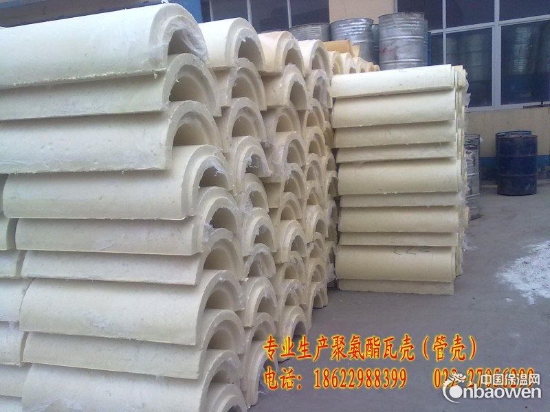 采用高功能聚醚多元醇和多次甲基多苯基多异氰酸酯为主要原料,在催化剂、发泡剂、表面活性剂等作用下,经化学反映发泡而成。聚氨酯管壳具有容量轻、强度高、绝热、隔音、阻燃、耐寒、防腐、不吸水、施工简便快捷等优异特点,已成为建筑、运输、石油、化工、电力、冷藏等工业部门绝热保温、防水堵漏、密封等不可缺少的材料。