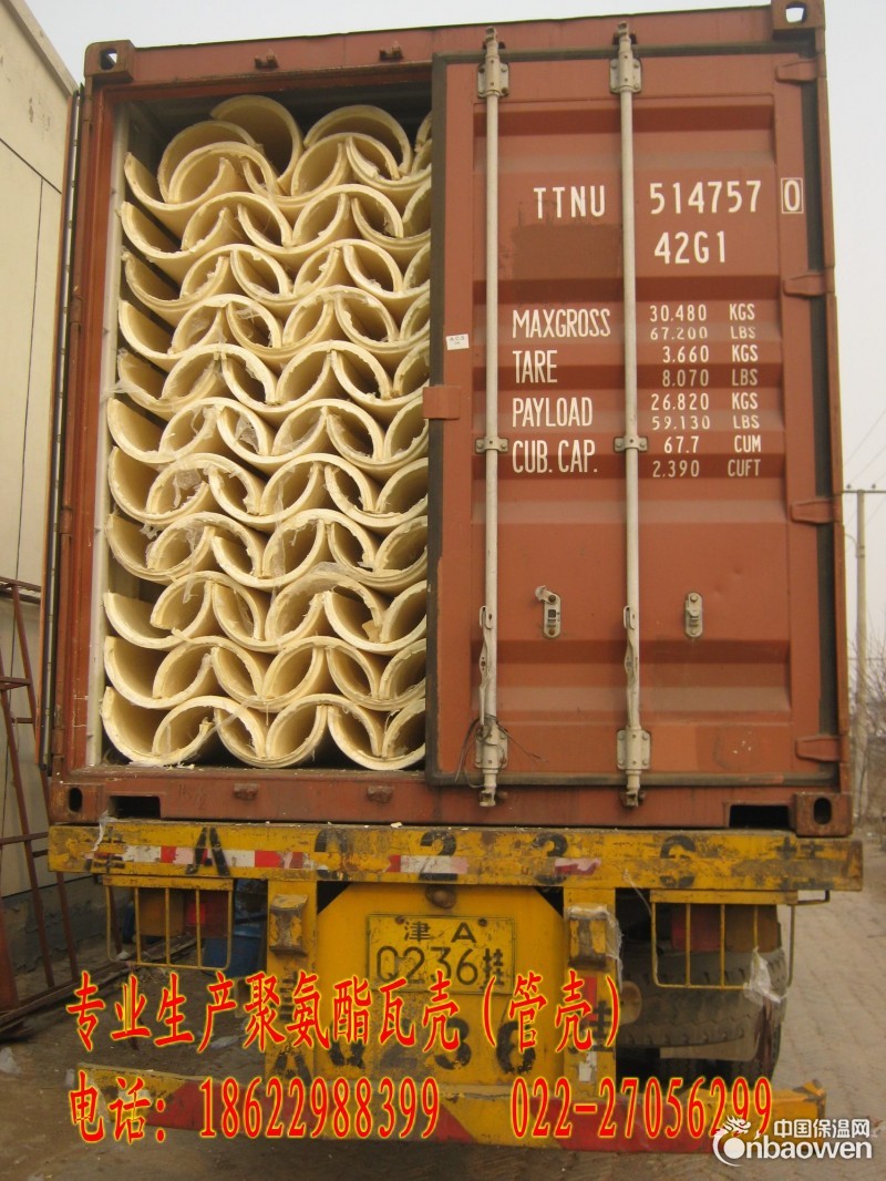 采用高功能聚醚多元醇和多次甲基多苯基多异氰酸酯为主要原料,在催化剂、发泡剂、表面活性剂等作用下,经化学反映发泡而成。聚氨酯管壳具有容量轻、强度高、绝热、隔音、阻燃、耐寒、防腐、不吸水、施工简便快捷等优异特点,已成为建筑、运输、石油、化工、电力、冷藏等工业部门绝热保温、防水堵漏、密封等不可缺少的材料。
