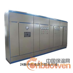 24脉中频电源,(即24脉可控硅中频电源 24脉晶闸管中频电源如果配上炉体就称为24脉中频炉)是一种新型节能低碳降耗中频炉种,使得电网的谐波干扰大幅度降低,同时在冶炼中易于变换冶炼品种,便于控制熔炼质量,操作灵活简单,功率密度大,熔炼速度快,热效率高,从而能够达到为企业降低投资成本、降低消耗、提高产能、创造效益的目的,能够更好地在大炉种冶炼中发挥其优势。在新型节能低碳环保趋势下,24脉晶闸管中频电源4组三相整流形成等效24脉整流,从而使24脉中频电源产生的低次谐波在高压侧抵消,最低次谐波从23次起。按照谐波分析,谐波次数越高其分量越低,24脉整流电源产生的谐波影响大大小于6中频电源、12脉中频电源。