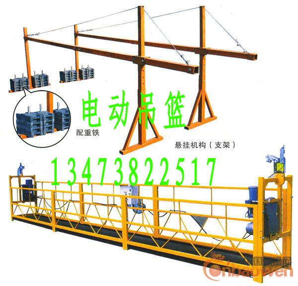 衡水光明建筑机械厂主要生产电动吊篮,篮体1~6米可以随意组合,电缆100米,钢丝绳400米(共4根),配重1吨,各地都有备案,各种资料齐全,技术人员负责指导安装维修,物美价廉,欢迎选购。联系人:小高 手机:13473822517 QQ:1181440091