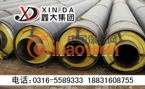 预制直埋蒸汽保温管由蕊管(工作钢管)减租层、隔热层、反射层、紧固钢带、滑动支架、空气层、外护钢管、喷涂聚氨酯、缠绕玻璃钢组成。