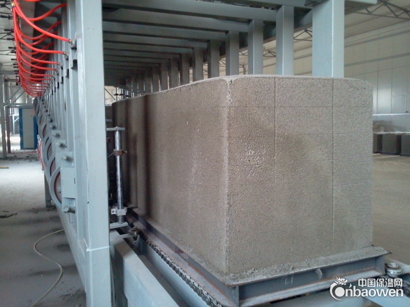 6、切割:具备一定强度的发泡水泥保温板毛坯脱模后即可进行切割,切割规格根据需要调整切割刀片进行;