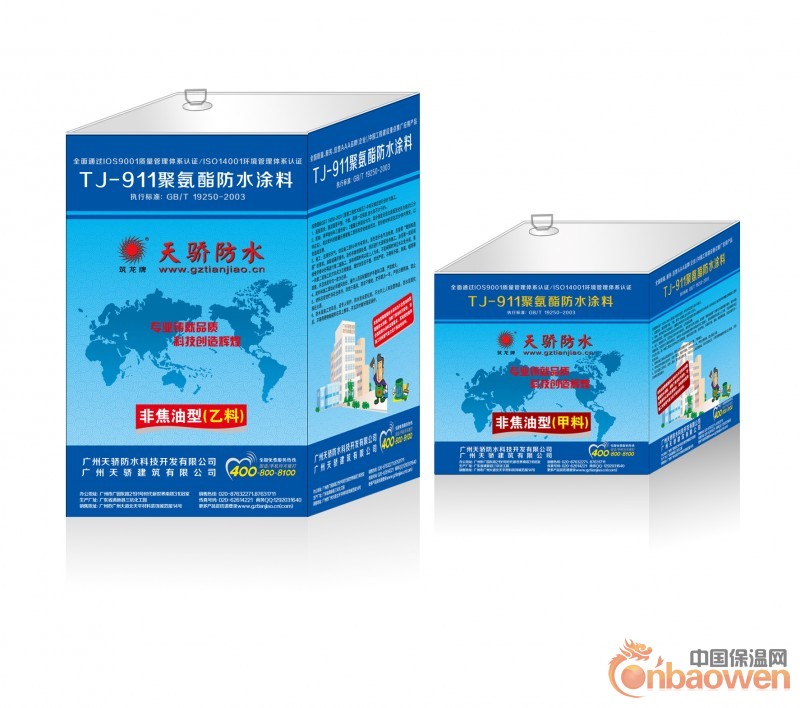 筑龙TJ-911非焦油型聚氨酯防水涂料为不含焦油的聚氨酯防水涂膜,消除了焦油的污染性,符合国家防水涂料发展要求。