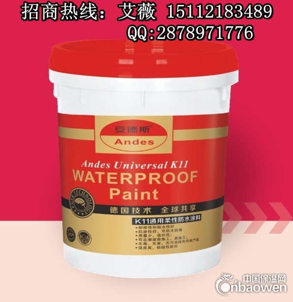 以上是加盟安德斯防水,防水涂料十大品牌,安德斯防水K11通用型防水涂料的详细介绍,如果您想更详细地了解加盟防水涂料十大品牌,防水涂料十大品牌,安德斯防水K11通用型防水涂料(图)的价格、厂家、型号及规格的最新信息,请直接联系供应商广州安德斯防水建材有限公司-艾薇:15112183489 QQ:2878971776。