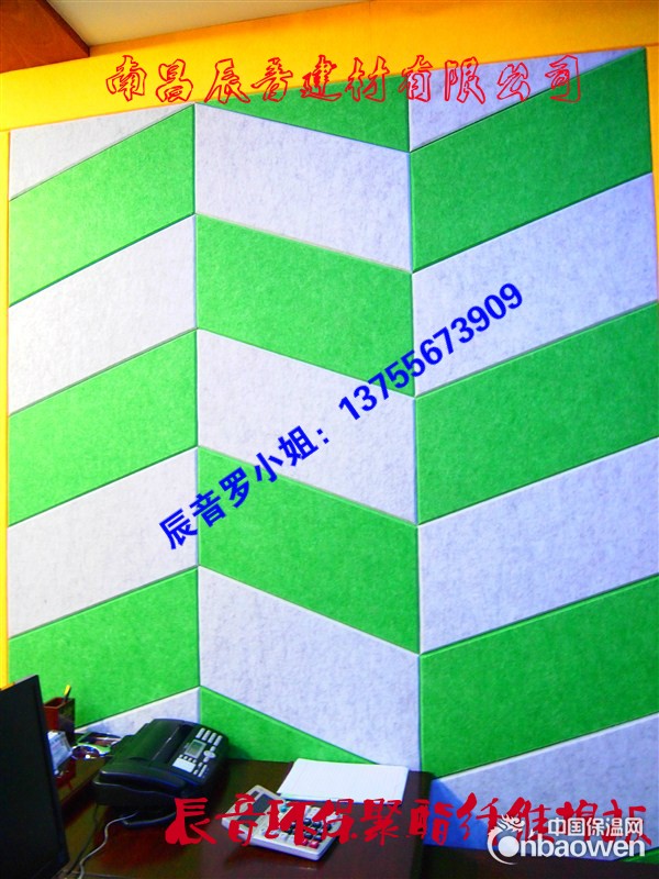 聚酯纤维吸音板具有吸音、静音、降噪、阻燃等作用,材质均匀坚实,不但富有弹性、韧性、耐磨、抗冲击、不易划破,其与空腔构成的薄板共振吸声体效果极好, 是一种宽频带的高效吸声材料。此外聚酯纤维吸音装饰板质轻,材料性能优异,不像一些脆性材料如穿孔石膏板及水泥纤维加压板等产生碎片或碎块存在坠落的危 险,甲醛0.05㎎/1的释放量标准,也远远小于国家规定甲醛释放量小于或等于1.5的标准.是代替以往层板加海绵或玻璃纤维的新型声学材料,且易销毁不 污染环境,可循环再用。