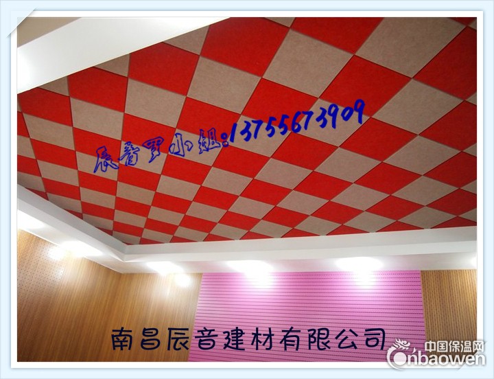 聚脂纤维吸音板,是以100%聚酯纤维为原料,经热压成形,由于着色丝生产批号不同,在光的作用下,易产生微小的色差;因此,在进货时尽量采用同一批号生 产的聚脂纤维吸音板,施工前将聚脂纤维吸音板进行排板,调整色差然后按调整好的排列顺序进行安装(最好载手套避免污染)施工。