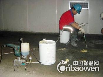 聚氨酯化学灌浆材料是一种低黏度,单组份合成高分子聚氨酯材料,形态为浆体,它有遇水产生交联反应,发泡生成多元网状封闭弹性体的特征。当它被高压注入到混凝土裂缝结构延展直至将所有缝隙填满(包括肉眼难以觉察的0.015mm微缝),遇水后(注水)伴随交联反应,释放大量二氧化碳气体,产生二次渗压,高压推力与二次渗压再次将弹性体压入并充满所有缝隙,达到止漏目的。