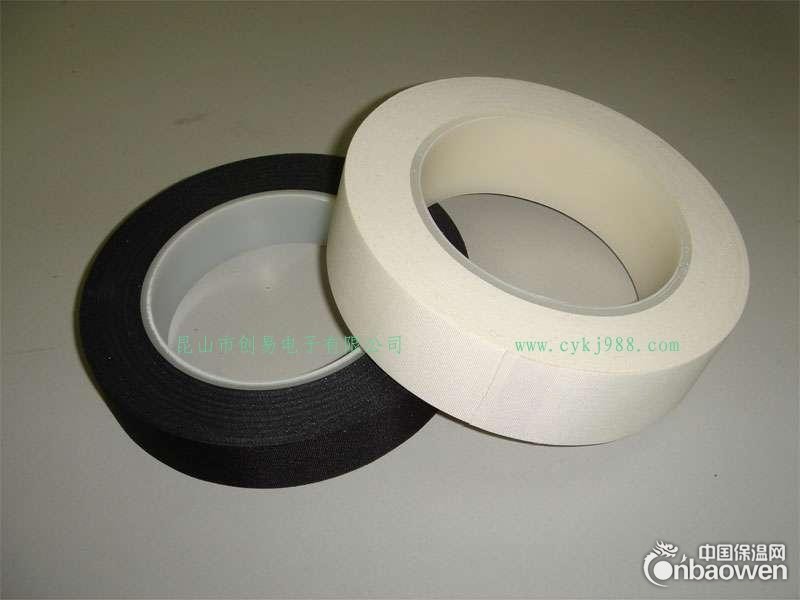 醋酸布胶带有黑白两种颜色可提供选择使用,耐温度达150℃,有阻燃与非阻燃性两个品种.厚度0.22±0.02mm,通过UL.SGS认证。通常长度为30M,宽可按客户需求订做。
