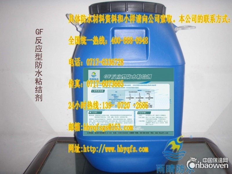 GF反应型防水粘结剂特惠价看得见,GF反应型防水粘结剂具有极好的防水效果,全国各地均有售,全国热线:400 888 0948 24小时服务热线:400 888 0948 24小时服务热线139 0720 2686 (李经理)座机:0717-6336728(朱经理)湖北雨晴竭诚为您服务,GF反应型防水粘结剂耐高温,夏季路面温度高,如若防护不到位可能导致路面推移,脱落,变形等病害,湖北雨晴生产的GF反应型防水粘结剂具有较好的防水性能,保证路面不出病害。GF反应型防水粘结剂抢购热线:400 888 0948 24小时服务热线:400 888 0948 24小时服务热线139 0720 2686 (李经理)座机:0717-6336728(朱经理)湖北雨晴竭诚为您服务。GF反应型防水粘结剂特惠价 折扣低 看得见。