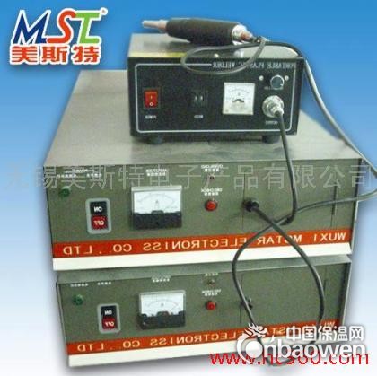 超声波点焊机组成:1、超声波发生器;2、振动系统(换能器/调幅器/焊头三联组);3、传动机构及工作台(模具与机架)。具体组成包括:机架-机架作为整个设备的基础,上置机头,后下部为气动元件安装,右下部为控制电源;换能系统-由换能器、中间放大器、聚能器(工具头)组成;机头-机头对换能系统起固定支撑作用,并设有加压装置、导电装置、上限位机构;超声波发生器-超声波发生器输出40KHZ的超声能量供给换能器。超声波发生器具有频率自动跟踪、过载保护功能,超声波发生器面板上有数码显示、电源开关、测频按钮、气动测试、指示灯和功率指示;电源开关-接通或切断电源之同(在控制箱后面);电源指示灯-灯亮时表示焊机电源供电正常;工作指示灯-表示焊机正常工作;输出鼓掌指示灯-亮时表示输出过流,已自动保护,无功率输出;输出功率、预压、焊接、保压时间:同做面板按钮设定;测频按钮-一般更换焊头时使用;气动测试-焊头调平时使用;超声波发生器后面板上有插座和接线柱;电源插座:输出交流220V/50KHZ之用;10A保险丝座-接换能器之用;输出插座-接换能器之用,因两根芯线和插头芯线的颜色不同,搞做会损坏发生器,因此不允许用户自行改换能器芯线和插头芯线的连接。