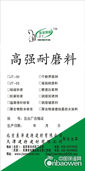 高强耐磨料是一种粉状无基复合单组分干粉砂浆,现场加水搅拌即可使用,专门用于钢厂、水泥厂、矿厂及化工厂等的各种冲渣沟、矿槽、下料斗、料仓和车库地面等的抗磨层。同传统的铁屑砂浆,铁屑混凝土相比,具有抗磨性高,抗冲刷能力强,与基础混凝土间的粘接强度高,抗压强度高,耐久性好,使用期限长的特点。
