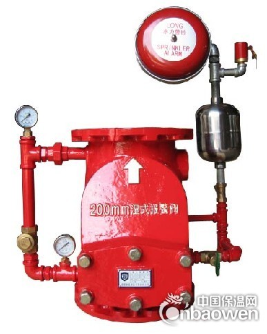 雨淋阀也可配湿式或干式控制管网,组成湿式或干式控制系统,当控制管网的喷头爆裂使隔膜腔的水压下降,阀打开。