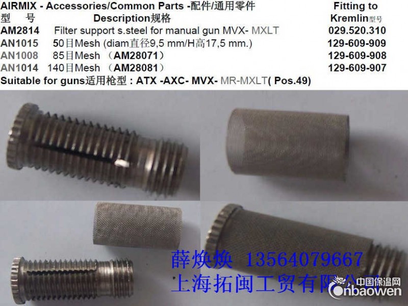 拓闽工贸(上海)有限公司发布的法国KREMLIN枪用滤网图集库