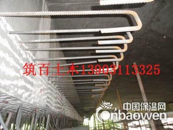 5. 植筋加固固化 钢筋植入后,在梁底模板上定位,在强力植筋胶完全固化前不能振动钢筋。强力植筋胶在常温下就可完成固化,按胶水说明书中指定固化时间待其固化后便可进行下道工序施工。