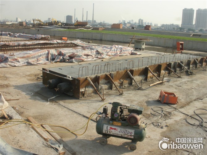 7、待混凝土初凝后,打开橡胶充气芯模的阀门放气,抽出芯模即可。(脱模时间根据施工情况自定)一般情况为:当手纸肚摁下有清晰指纹时,方可脱模。