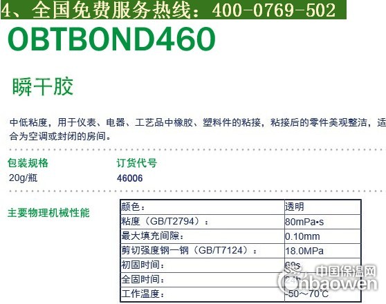 欧邦泰460胶水属于氰基丙烯酸甲基乙酯,相比普通瞬间胶,他拥有固化后不发白的特殊性能