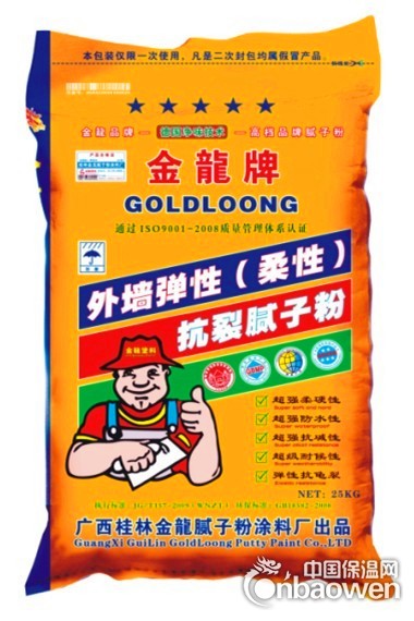 广西桂林金龙腻子粉涂料厂创建于2006年(注册资金350万元),占地面积16000平方米,是一家致力于高档净味腻子粉的研发、生产、销售及工程装饰服务为一体的现代化大型生产企业,公司以倡导专业化、规模化、品牌化、产品功能明确化为发展思路,全力以“打造中国名牌腻子粉”为企业宗旨。以“品质源于专业,专业铸就品牌”为研发理念,追求卓越,发展创新,是广西规模最大的高档净味腻子粉生产企业。依托广西丰富优质的矿产资源,所生产的腻子粉细度好,白度高,易施工,耐水擦洗,抛光能快速达到镜面的效果,超白超亮,硬如瓷砖等特点,赢得了广大消费者的认可和赞誉,近年来的销售网络已覆盖广西、湖南、广东、贵州等省市县镇。我们始终坚持“以市场为导向、以客户为中心、以品牌为动力,以质量为生命”的生产理念,专注绿色、环保产品的研发和生产。公司以中国自主创办品牌为目标,企业通过了“ISO:9001-2008国际质量体系认证”、“ISO:14001环境管理体系认证” 、“无毒害绿色环保建材认证”、“中国绿色环保产品”、“中国绿色建材产品”、“中国环境标志十环体系”等认证。2011年被评为“广西腻子粉行业十佳品牌诚信单位”认证。2012年被评为“行业诚信单位”、“AAA级中国质量信用企业”“守合同重信用企业”并被评为“广西知名品牌腻子粉”、“质量信得过产品”“中国知名品牌”“中国腻子十大品牌 ”等荣誉称号。公司现拥有 “金龙牌”、“宝玉牌”两大高档净味腻子品牌,生产主营产品有:《内墙镜面抛光腻子王》、《高档水性净味腻子粉》、《耐水环保腻子粉》、《墙漆功能腻子粉》、《防霉防潮腻子粉》、《外墙腻子粉》、《外墙防水腻子粉》、《外墙抗裂腻子粉》、《外墙弹性柔性腻子粉》、《外墙瓷砖翻新腻子粉》、《倒板找平界面腻子粉》、《外墙界面处理剂》、《马赛克翻新腻子粉》、《氟碳漆专用腻子粉》、《瓷砖胶》、《外墙抗裂砂浆》等数十个产品。是目前广西腻子粉行业中产品档次最多,品种最齐全的腻子粉龙头生产企业。桂林金龙涂料:“以质量创立品牌,以品牌创造价值,以规模创造效益、以诚信赢得天下”按照“诚信、务实、专业、创新、高效”的服务标准,不断提高产品质量和品牌知名度,为广大客户提供高效一流的产品与优质服务,并竭诚欢迎全国各地有志于建材行业发展的人士加盟合作,真诚以待,共谋发展,共创美好未来!