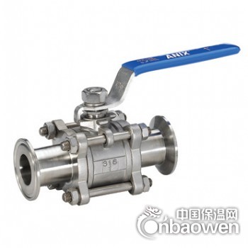 三片式卡箍球阀,连接方式为卡箍式,快装式,就是带上一个卡箍和接头,跟管道连接,这种球阀可以适用于卫生级流体管道场合,如药厂,化工厂,饮料厂,等,不过药厂,饮料厂最好选择卫生级球阀,外面抛光的,质量符合卫生级要求。