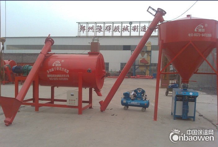结构特点:此类生产线设计简单、投资小、见效快,采用单轴三螺带高效混合机,混合精度高,不破坏物料的原始状态,确保了砂浆系统的保温系数不会因为保温原料的形状破坏面降低,确保了产品的保温效果,特别适应玻化微珠、膨胀珍珠岩的无机保温材料的生产,适用于中、小规模厂商生产,也可以配置自动包装系统,更显示其优越性。