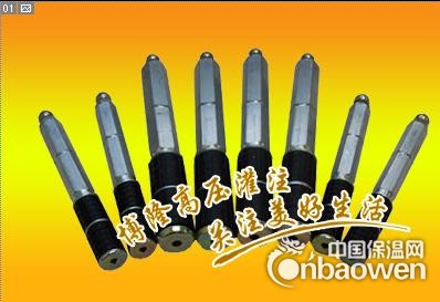 高压灌注机的配件——高压止水针头:是利用环压紧固的原理。头部设有单向截止阀,可防止浆液在高压推挤下倒喷。环压膨胀部分用橡胶套管,直径为13MM,塞入孔径为14MM的注浆孔上,拧紧环压螺栓,压缩橡胶套管,使注浆嘴固定在注浆孔内。(注浆嘴的单向阀要在0。4KN以上压力才能打开,因此注浆压力必须高于这个数值。
