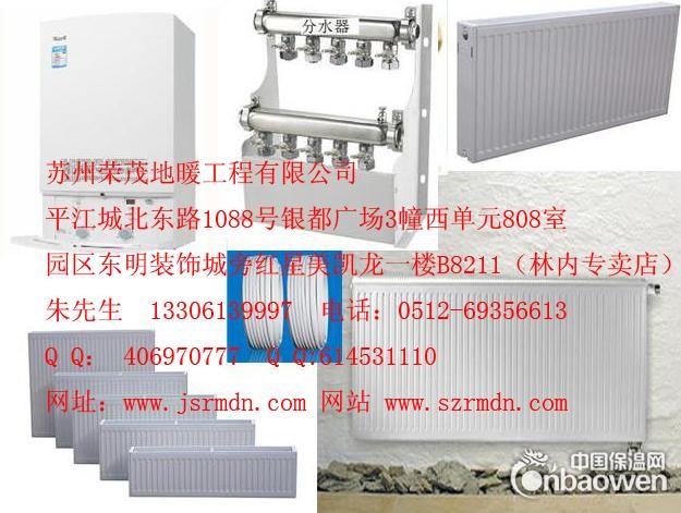 铝制暖气片导热快、能耗低。铜铝复合暖气片寿命长。钢制款式颜色多。苏州荣茂地暖工程有限公司,销售,施工,安明设计改造改装后服务电水地暖气片,散热器地源热泵批价格,丹佛斯耐克森恒康汉克斯堡阁安泽发热电缆,电热膜戴姆特杰伦阿里郎世纪仰望圣佳碳晶纤维,壁挂炉有博世、林内、依玛、威能、雅克菲、八喜、贝雷塔菲、斯曼,水处理、水利、怡口、3M、霍尼韦尔、爱惠浦。暖气片有圣劳伦斯、太阳花、吉水、陇星、努众奥、三叶、众合、佛罗伦萨、瑞华特格、凯美、金海、德美拉德欧德宝、意乐酷、牌沙尼卡、HM,曼瑞德、洁瑞好、分水器、保利、乔治欧博诺地暖管等等