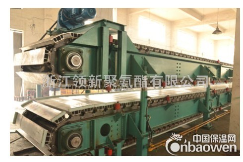 聚氨酯节能防火板材连续生产线是以生产聚氨酯泡沫板材为主的设备,其可以生产表层为铝板,彩钢板,无纺布、牛皮纸或铝箔的各种聚氨酯防火保温板。同时,扩展后也可以生产钢结构用钢板夹芯板,芯材厚度、宽度根据客户要求定制。最宽1200mm,长度自定。产品主要用于建筑外墙外保温,中央空调送风管,钢结构墙板和屋面板等。