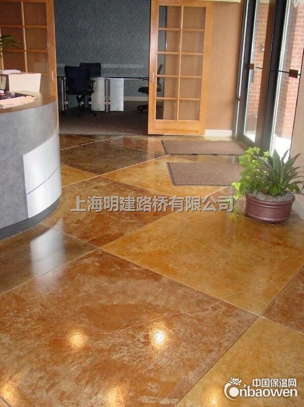 酸着色系统由三部分组成即:酸性着色剂、封闭剂和专业工具;酸性着色剂是和中酸着色的矿物质发生化学反应,使颜色渗透至混凝土表层,而不会起皮、碎裂;渗透到混凝土每一部分的各种颜色将保持美丽的色泽,成为混凝土永久的一部分;酸性着色剂的用途很广泛,既可单独完成对混凝土表面的装饰效果,又可与压印地坪搭配使用来完成更高要求的混凝土装饰效果;酸着色系统制作的地坪维护费用低、寿命久、耐用性强。适用于各种室内、外结构牢固的旧混凝土或新浇筑混凝土表面装饰效果的制作;如餐厅、酒吧、展厅、商场、体育场馆、酒店大堂、酒店房间、家庭、公园、停车场、园林、小区和文化设施等地面领域的理想选择。