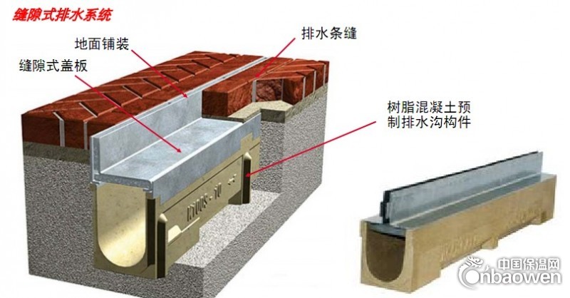 缝隙式排水系统又分为侧缝式和中缝式两种。缝隙式排水沟具有良好的排水能力,相比较适于安装在对铺面景观要求比较高的场所。具有良好的承重性能,产品生命周期长且维护成本低。