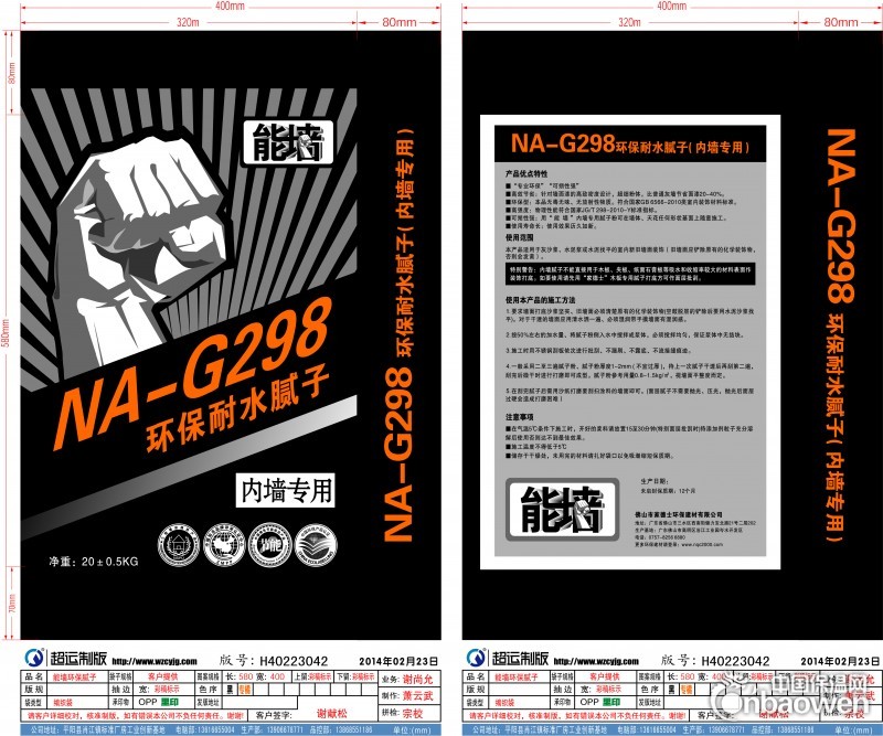 能墙环保耐水腻子(内墙专用)NA-G298