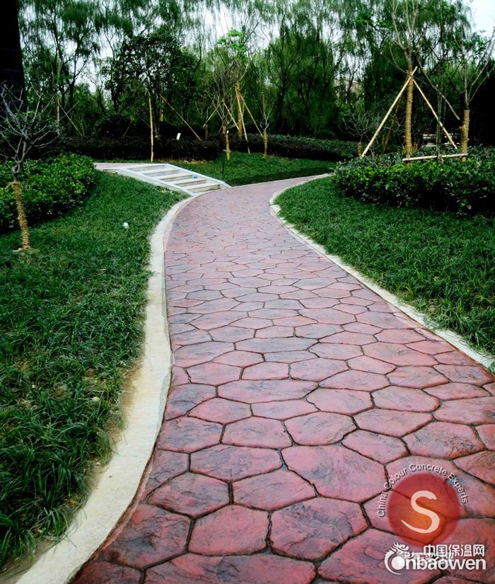 24、施工后的彩色压模地坪路面第二天遇高温需洒少量水进行养护,在验收交付使用前必须做好必要的保护工作。
