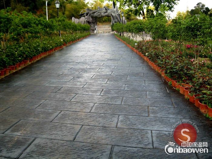 2、耐重压:压花地坪的抗压强度为75.5Mpa(养护期为28天;压花路面的抗压强度为40-55Mpa)