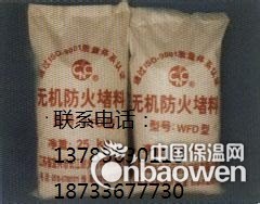 无机防火堵料产品描述 DW-A3-WHB-II型无机防火堵料是我公司根据GB23864-2009标准研制成功的新型产品,该产品由无机材料加化学助剂混合而成,呈粉末状,具有强度高,耐水、耐腐蚀、无气味、施工方便等特点。 DW-A3-WHB-II型无机防火堵料适用于电力、冶金、化工、建筑等行业中电缆贯穿孔洞等开口的防火封堵。施工方法: 需封堵的孔洞,封堵前要清扫干净。将无机防火堵料取出,加适量水,搅拌均匀,施工时与浇注混凝土差不多,短时间内即可速固成型,施工时应根据需量调制,以免造成浪费。包装与运输: 1、DW-A3-WHB-II型无机防火堵料用纸塑复合袋包装,每袋规格为25kg,本产品宜储存于阴凉干燥通风处。 2、本堵料属不燃、不爆、无毒、无味、无腐蚀性的物质,运输中应避免日晒雨淋。主要性能指标:外观 干密度 耐水性 耐油性 腐蚀性 抗压强度 初凝时间 耐火性能
