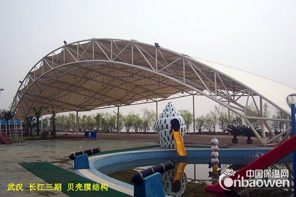 由ETFE(乙烯-四氟乙烯共聚物)生料直接制成。ETFE不仅具有优良的抗冲击性能、电性能、热稳定性和耐化学腐蚀性,而且机械强度高,加工性能好。近年来,ETFE膜材的应用在很多方面可以取代其他产品而表现出强大的优势和市场前景。这种膜材透光性特别好,号称“软玻璃”,质量轻,只有同等大小玻璃的1%;韧性好、抗拉强度高、不易被撕裂,延展性大于400%;耐候性和耐化学腐蚀性强,熔融温度高达200℃;可有效的利用自然光,节约能源;良好的声学性能。自清洁功能使表面不易沾污,且雨水冲刷即可带走沾污的少量污物,清洁周期大约为5年。另外,ETFE膜可在现成预制成薄膜气泡,方便施工和维修。ETFE也有不足,如外界环境容易损坏材料而造成漏气,维护费用高等,但是随着大型体育馆、游客场所、候机大厅等的建设,ETFE更突显自己的优势。目前生产这种膜材的公司很少,只有ASAHIGLASS(AGC)、日本旭硝子、德国科威尔等少数几家公司可以提供ETFE膜材,这种膜材的研发和应用在国外发达国家也不过十几年的历史。