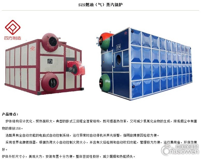 自公司成立以来,四方锅炉设备有限公司专心致力于热能领域,坚持不懈地开发高效、安全、环保、节能的供暖设备,把丰富经验和知识转化到设计和开发当中,拥有世界领先的供热技术。公司开发了全系列的供暖设备,包括热水炉、蒸汽锅炉及导热油炉和热风炉。公司产品主要产品: SHXF系列循环硫化床锅炉(4-35T)、WNS系列燃油(气)锅炉(0.3-20T/H、0.35-14MN);SZL系列双锅筒水管锅炉(2-20T/H、1.4-14MW);DZL新型水火管锅炉(1-100 T/H、0.7-70MW);SHS、LNB系列煤气一体化锅炉(0.3-10T);YGL系列有机热载体锅炉(10-1200万大卡);余热锅炉,各种蒸压釜,过热器,热交换器,反应塔,全自动恒压变频无塔供水系统等八大系列150多个品种。产品销往全国三十多个省市和地区。