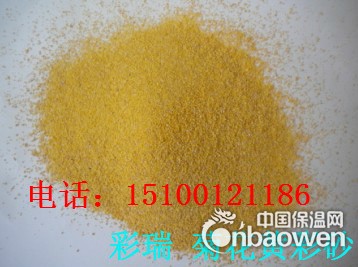 黄色系彩砂有:柏坡黄彩砂,浅黄彩砂,乳黄彩砂,黄玉彩砂,松香黄彩砂,虎皮黄彩砂,地板黄彩砂,米黄彩砂,中黄彩砂,菊花黄彩砂,杏黄彩砂,金丝黄彩砂,新金黄彩砂,金黄彩砂等
