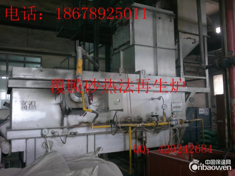 热法再生炉采用沸腾床床上加热方式,本炉由炉体,燃烧系统和鼓风系统组成,炉体内的4个侧面和顶面用耐火材料砌成,燃烧系统随燃料种类不同而异,由烧嘴,助燃风机,控制阀等组成。鼓风系统由高压风机,空气预热器和管道组成,空气在预热器的管内流动,热气中自上而下在管外流动,通过管壁进行交换,热交换后的空气从焙烧炉的侧面进入风室,再通过沸腾板上的风帽进入焙烧室,使砂粒呈沸腾状态。砂砾从预热器均匀进入炉内,烧嘴发出的火焰沸腾的旧砂直接接触,把砂粒加热到700-800℃,使其表面的树脂烧去或烧焦使其失去粘附性,经高温培烧后进入冷却床中。成为再生砂。