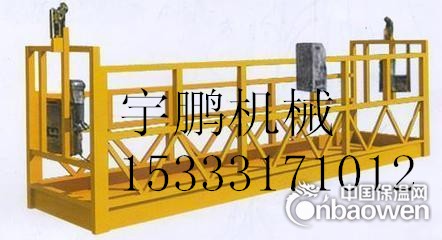 吊篮生产厂家,销售电动吊篮厂家,批发电动吊篮厂家,建筑用电动吊篮,高空作业吊篮 高处作业吊篮是用钢丝绳从建筑物顶部,通过悬挂机构,沿立面的悬吊平台能上下移动的一种悬挂式设备。高处作业吊篮主要用于高层建筑及多层建筑物的外墙施工、装修以及幕墙玻璃的安装、清洗等工程作业,也可用于船舶修造、电梯的安装作业以及油库、大型罐体、高大烟囱、桥梁和大坝工程检查、维修施工等作业。高处作业吊篮操作简单、移位容易、方便实用、安全可靠。使用本产品,可免搭脚手架,使施工成本大大降低。 电动吊篮由电动机、传动机构和卷筒或链轮组成,通常用自带制动器的鼠笼型锥形转子电动机(或另配电磁制动器的圆柱形转子电动机)驱动,起重量一般为630公斤