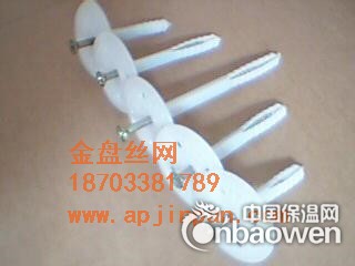 保温钉由三部分组成:一是尼龙制成的套管;二是套管内的镀锌钢螺丝;三是套管前的尼龙圆盘(用以压盖保温板)。它的长度根据保温板厚度而有所不同。
