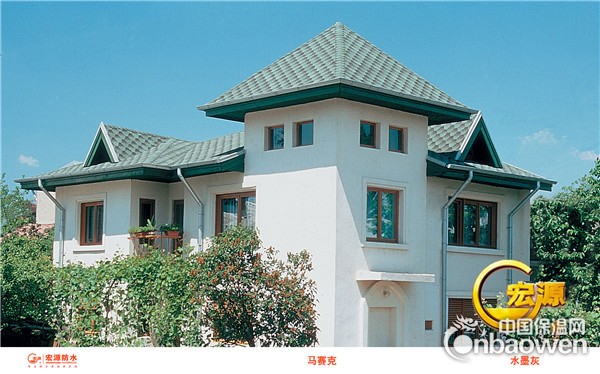多彩玻纤瓦使用屋面坡度从10°到90°,而且由于玻纤瓦的柔韧性,使得它能根据复杂的建筑外型灵活运用,可以铺成锥形、球型、弧形等特形屋顶,并能积极地充当屋脊、瓦脊、沿口、凹沟的串演角色。
