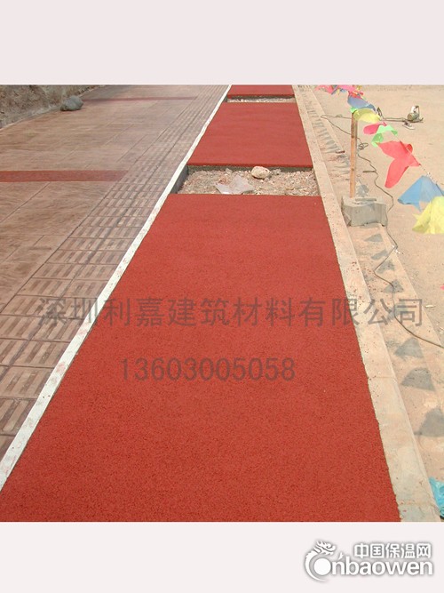 但是在我们铺设彩色透水地坪的时候要注意哪些呢:施工现场须专人负责物料的配比。 (2)严格控制水灰比,即控制水的加入量,水在搅拌中分2-3次加入,不允许一次性加入。 (3)为使物料搅拌均匀,适当延长机械搅拌时间,但不宜过长。 3)运输 透水混凝土属干性混凝土料,其初凝快,一般根据气候条件控制混合物的运输时间,运输一般控制在10分钟以内,运输过程中不要停留,手推车必须平稳。 4)摊铺、浇筑成型: 透水混凝土属干性混凝土料,其初凝快,摊铺必须及时。对于人行道面,大面积施工采用分块隔仓方式进行摊铺物料,其松铺系数为1.1。将混合物均匀摊铺在工作面上,用括尺找准平整度和控制一定的泛水度,然而平板振动器(厚度厚的用平板振动器)或人工捣实。捣实不宜采用高频振动器,最后用抹合拍平,抹合不能有明水。