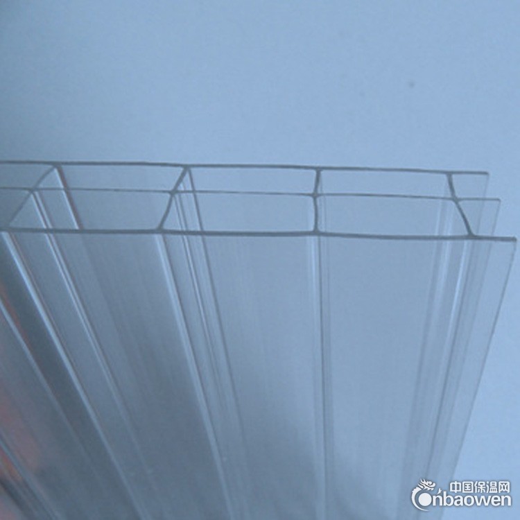 8.表面有防紫外线的共挤层,可防止太阳光紫外线引起的树脂疲劳变黄。表面共挤层具有化学键吸收紫外线并转化为可见光,对植物光合作用有良好的稳定效果。人工气候老化试验4000小时,黄变度为2,透光率降低值仅0.6%。十年后透光流失仅为6%,PVC流失率则高达15%—20%,玻璃纤维为12%-20%。