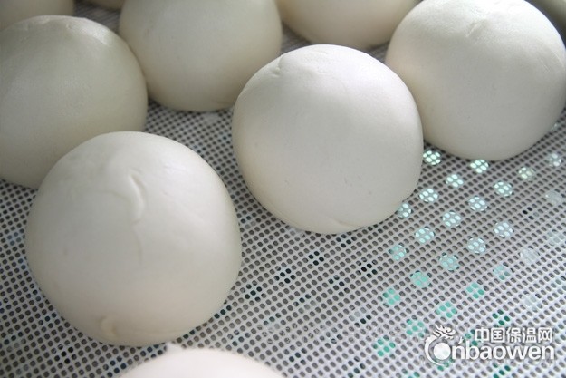 本产品在使用前应先用开水漂洗,可加入少量洗涤剂,晾干或烘干后才能放入托盘;在摆放包点前,若胶垫表面没有水滴,就不会出现粘包现象。