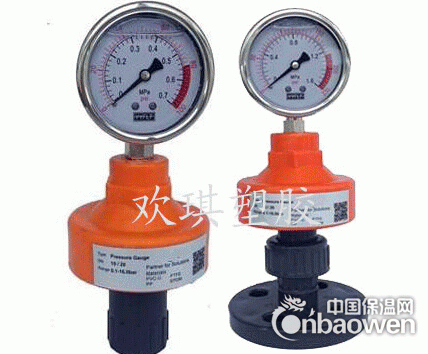UPVC隔膜压力表能适应于测量强腐蚀、高温、易结晶、易凝固、有固体浮游的介质压力以及必须免测量介质直接进入通用型压力仪表和防止沉淀物积聚且易清洗的场合,塑料隔膜压力表由隔膜隔离器与痛型压力仪表组成一个系统的隔膜表。