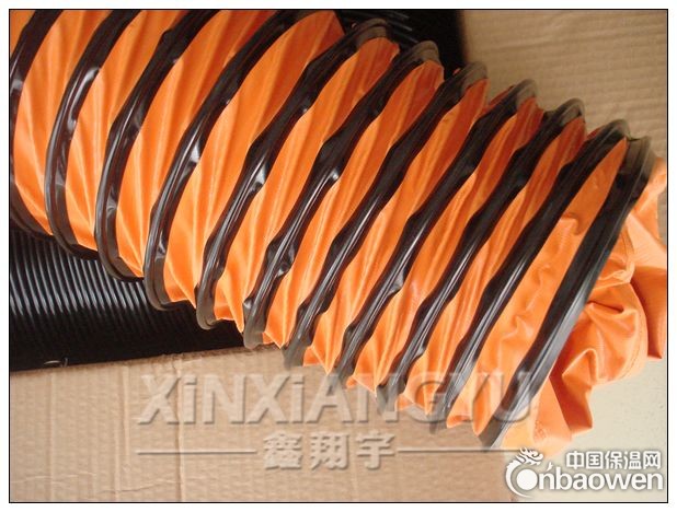 耐负压/耐高温/大口径通风软管,PVC夹网布高温风管,XY-0422风级抽风送风,排尘除烟专用。本耐负压/耐高温/大口径通风软管,PVC夹网布高温风管,XY-0422由塑料胶骨包裹钢线为骨架,以桔黄色塑料夹网布为管身,管身处每隔一米有一金属吊环,可方便固定风管,产品伸缩弯转、驳接自由、体积轻巧、耐高温.耐磨.耐压、耐酸碱且阻燃、绝缘。配合通风设备广泛应用于机房、地下室、隧道、市政管道工程、地下电缆维修、机械造船工程、消防救护排烟等恶劣工作环境下的送风及排气、集除烟尘之用。通风管更是手提式抽送风机的必备之选!