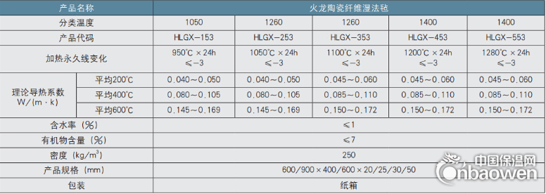 ★ 标准陶瓷纤维毡产品特性: