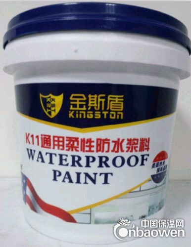 金斯盾通用型K11防水涂料是一种双组分聚合物改性水泥防水材料。浆料由进口高聚物添加各种助剂化合而成,具有高粘结力、柔韧性,以及防霉、耐磨性能;粉料由优质水泥、石英砂及独特的活性物质组成,遇水之后,发生化学反应,渗进结构体内部,并形成结晶体,不仅阻遏各方向的水通过,而且加固了结构体,延长其寿命。