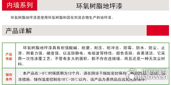 环氧树脂地坪漆具有以下特点:一是,具有优良的附着力。环氧树脂地坪涂料因具有许多烃基和醚键,而能与底材料吸附。并且环氧树脂固化时体积收缩率低因此漆膜对金属、陶瓷、混凝土、玻璃、木材等极性底料都有优良的吸附力。二是,环氧树脂地坪漆对湿面有一定的润湿力。三是,环氧树脂地坪漆分子不高能与各种固化剂配合制造无溶剂,环保并能获得厚膜涂层。四是,环氧树脂地坪漆因含有环氧基和羟基两种活泼基团,而能与多元胺、酚醛树脂、聚酰胺树脂等配合形成多种涂料。可常温干燥,亦可高温烘烤,可以满足不同的施工需求。
