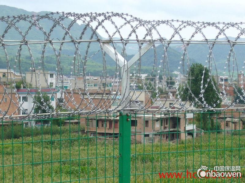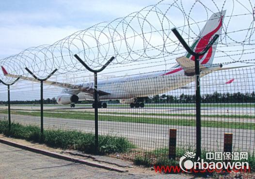 机场/监狱防护网又称作“Y型安全防御护网”,是由V型支架立柱,加强型焊接片网,安全防盗连接件和热镀锌刀片刺笼组成加强度和安全防御性级别很高。近年来,被广泛应用在机场,军事基地等高安全场所。注:如果在机场护栏网顶部加装刀片刺丝,刀片刺绳后有很好的增强了安全防护性能。采用电镀,热镀 喷塑 ,浸塑等防锈形式,具有很好的抗老化,抗晒,耐候等特点。其产品造型美观,花色多样,既起到围栏作用,又起到美化作用。由于具有安全性高,防攀爬能力好,网片连接方式采用特制SBS紧扣件,有效防止人为的破坏性拆除,横向四道折弯加强筋,使网面强度明显著增加。